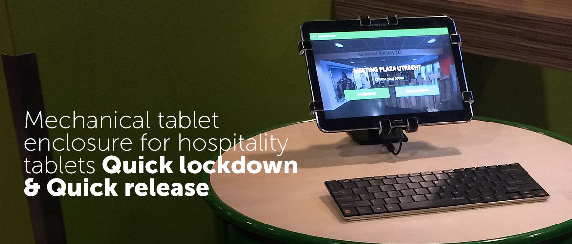De tablet wordt vergrendeld in hoogwaardige stalen grips. Ontgrendeling gebeurt door middel van unieke sleutels. Er komen geen elektronica, sensoren of kabels aan te pas!